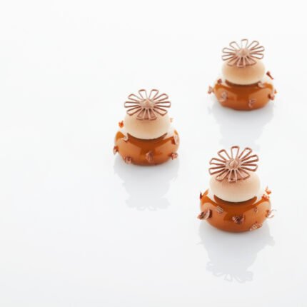 Flexible food-grade silicone mat for easy and creative decoration of monoportions, snacks and cakes in round shape.